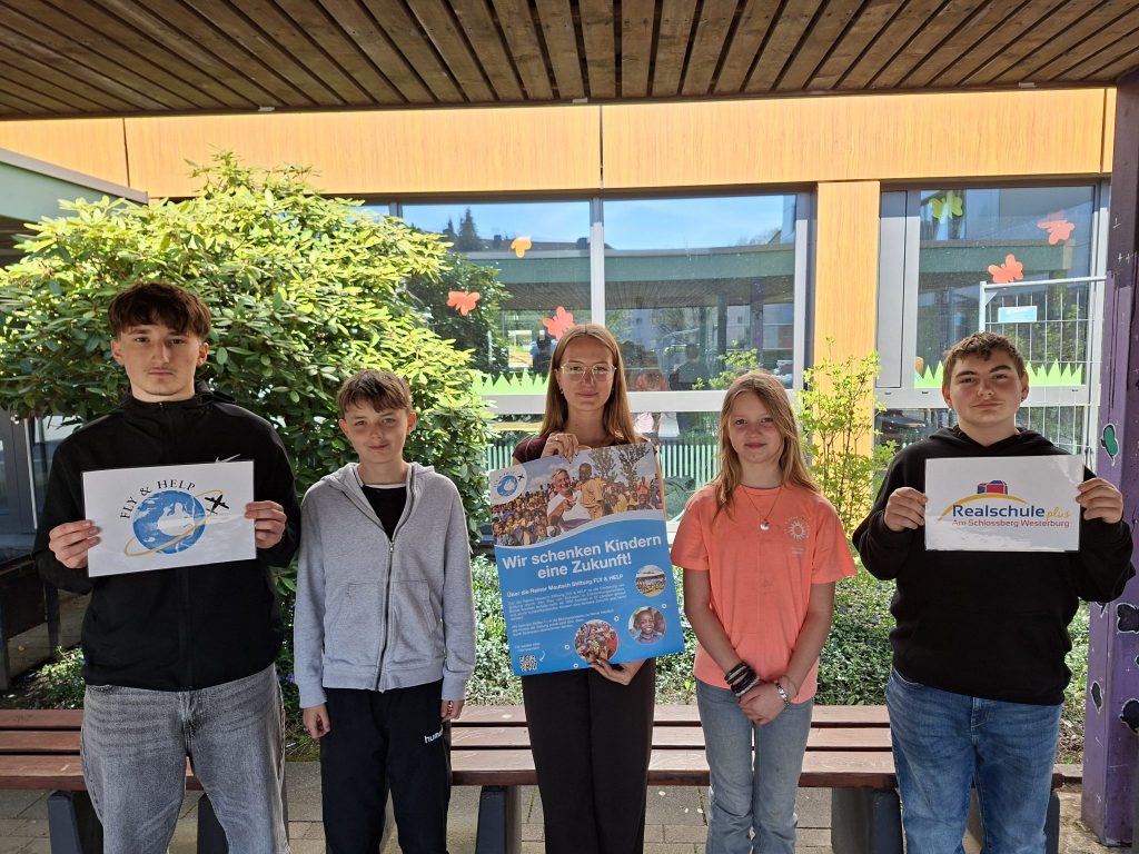 Mit dieser Aktion möchten wir unsere Schule feiern und gleichzeitig Gutes tun. Die gesammelten Spenden kommen der Organisation fly & help von Rainer Meutsch zugute, die weltweit Schulbauprojekte unterstützt und Kindern den Zugang zu Bildung ermöglicht.